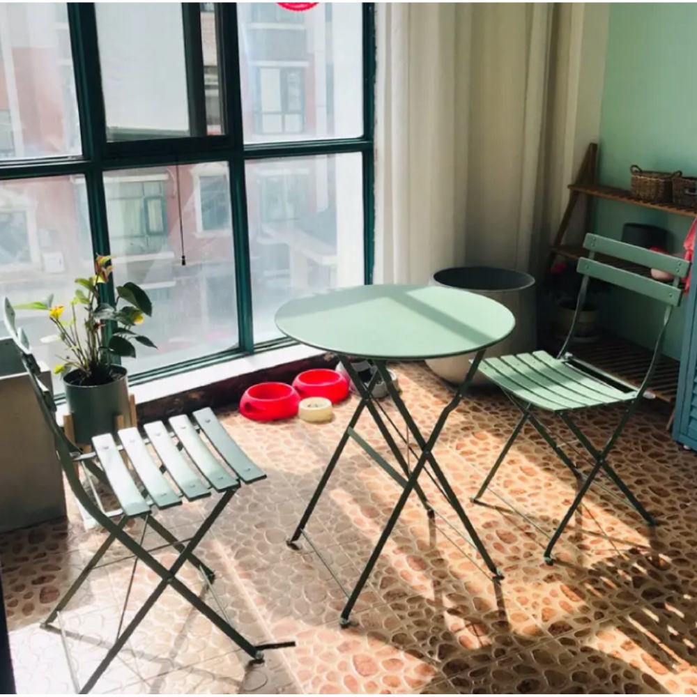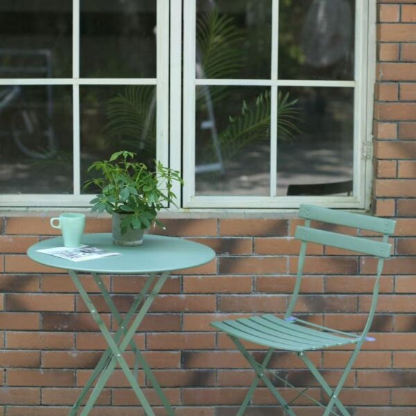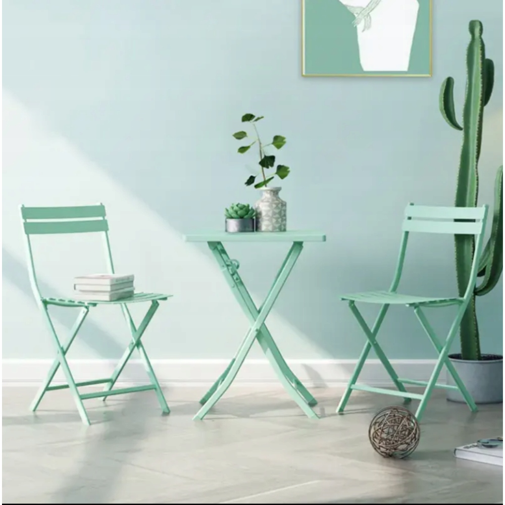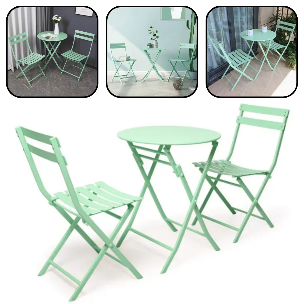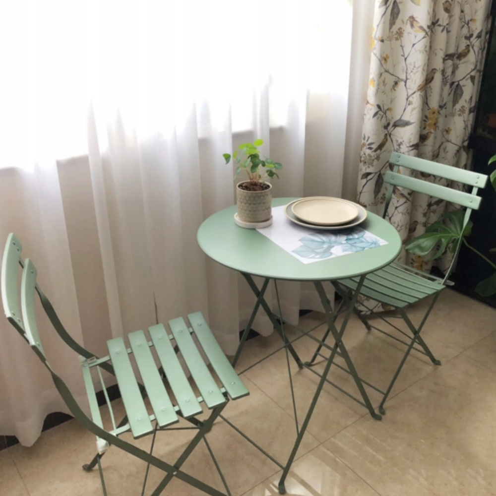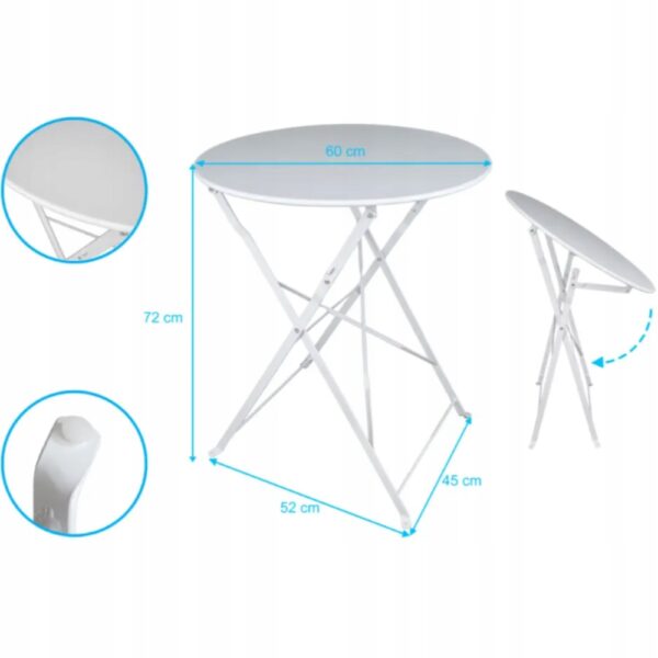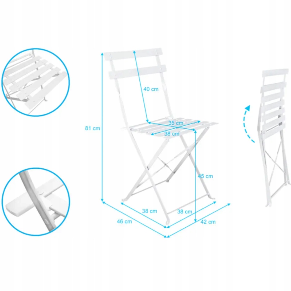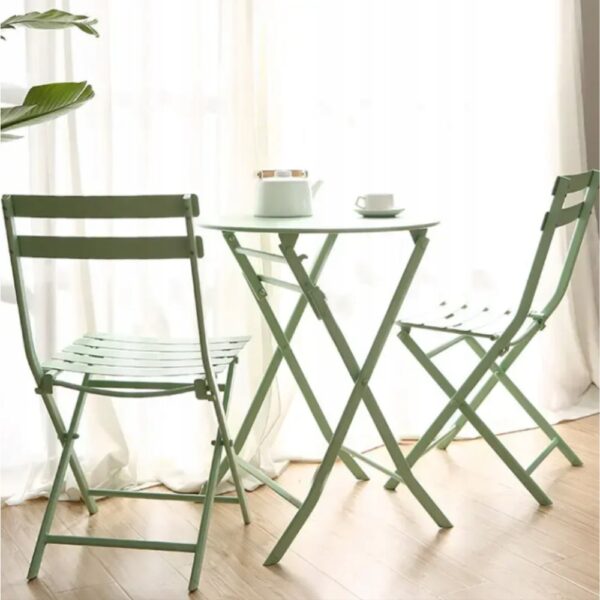 Idealny dla małych przestrzeni! Zarówno krzesła, jak i stół są składane, dzięki czemu zestaw zajmuje minimalną ilość miejsca, gdy nie jest używany.