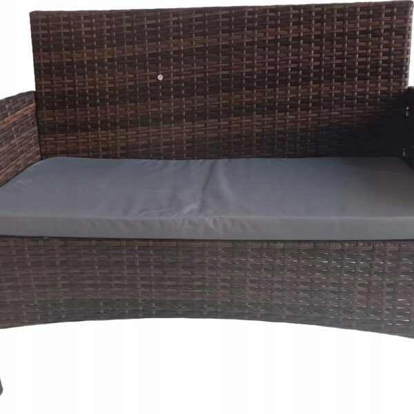 - Stelaż: Mocny stalowy stelaż malowany proszkowo, pokryty technorattanem, zapewnia stabilność i wytrzymałość.