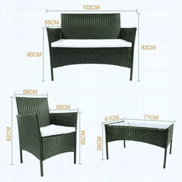 Ten mega komfortowy zestaw ogrodowy składa się z sofy, dwóch foteli, stolika oraz miękkich poduszek, które zapewniają wygodę podczas długiego odpoczynku. Stolik idealnie pomieści książki, czasopisma czy kawę, tworząc przestrzeń do relaksu.