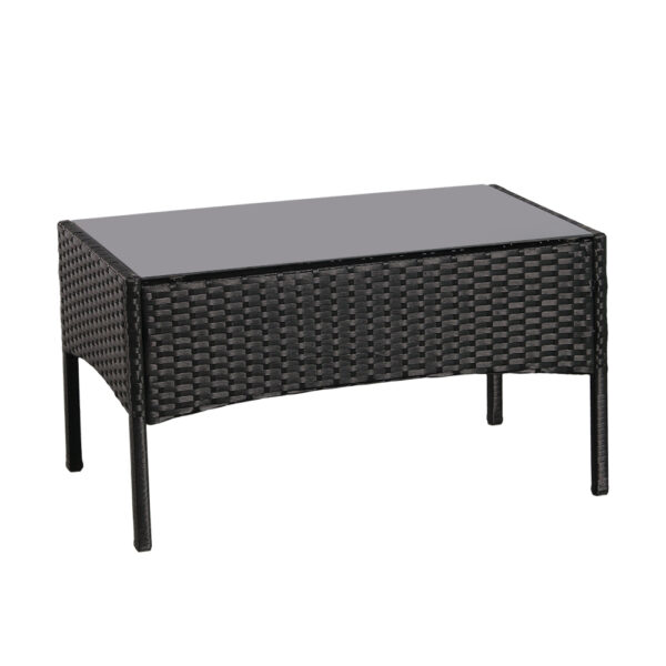 - Blat: Wykonany z hartowanego czarnego szkła, nadaje się do użytku na zewnątrz i wewnątrz.
